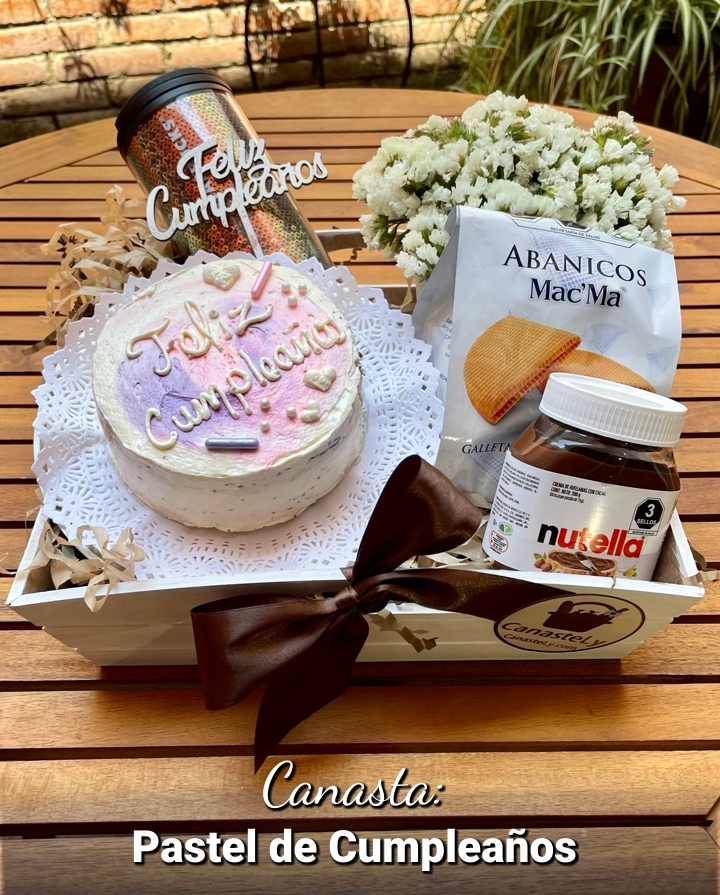 Canasta Pastel de Cumpleaños El mejor regalo para cumpleaños¡Fresca, divertida y deliciosa explosión de sabores! Incluye: Pastel de cumpleaños. Termo Starbucks. Maceta con Flores. Galleta Mac’Ma abanico con tarro de nutella. Precio: $1,860 Si deseas personalizar tu canasta contáctanos Términos y condiciones: Los Ingredientes podrían variar, sujetos a disponibilidad por parte del proveedor. No incluye gastos de envío Precios más iva Precios en pesos mexicanos ¿Dudas?Habla con nosotros Habla con nosotros
