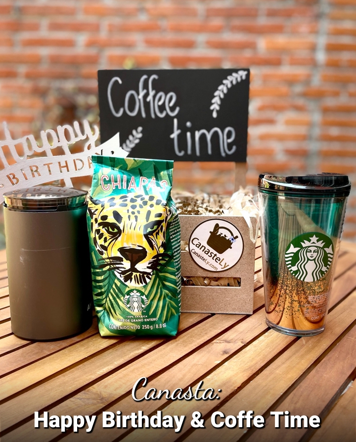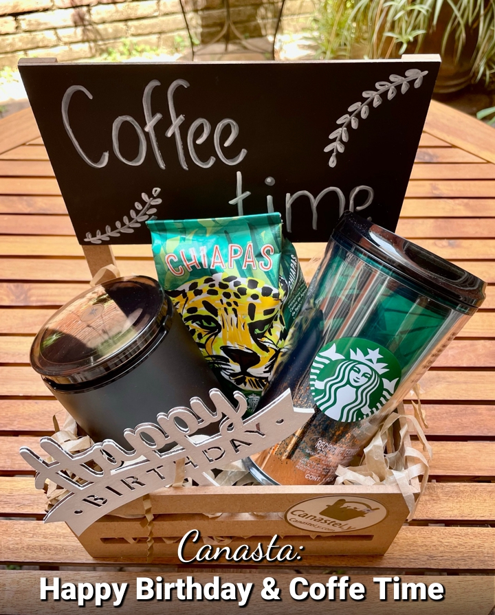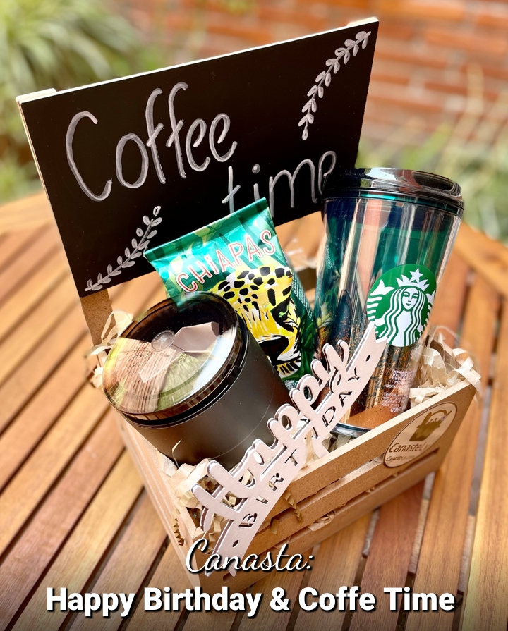 Canasta deCumpleaños Para este día especial tenemos el regalo Canasta Happy birthday & coffe time El mejor regalo para este día especial es con un detalle Este día de su cumpleaños regala nuestra Canasta perfecta para celebrar su día en donde sea. Incluye: Paquete de Café Starbucks. Termo Starbucks. Molino de café. Precio: $1,860
