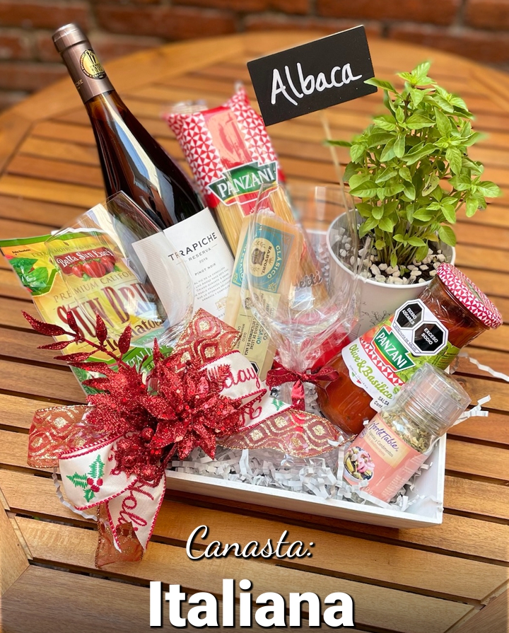 1 Botella de Vino (Trapiche Pinot Noir o 3V Casa Madero o Ensamble).1 Paquete de Pasta Panzani de 500 gr.